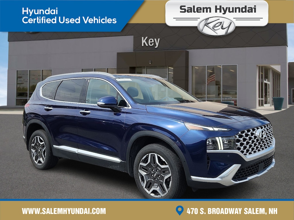 "2022 Hyundai Santa Fe Limited LimitedHyundai Certified Pre Owned 1-Owner Clean CarFax AWD Black Leather Apple CarPlay & Android Auto Heated & Ventilated Front Bucket Seats Leather Seat Trim Power Liftgate Power moonroof. This Santa Fe Limited is nicely equipped with Option Group 01 Hyundai Certified Used Vehicles Certified AWD Black Leather Apple CarPlay & Android Auto Heated & Ventilated Front Bucket Seats Leather Seat Trim Power Liftgate Power moonroof 12 Speakers 4-Wheel Disc Brakes ABS brakes Air Conditioning AM/FM radio: SiriusXM Auto High-beam Headlights Auto-dimming Rear-View mirror Automatic temperature control Brake assist Delay-off headlights Dual front impact airbags Dual front side impact airbags Electronic Stability Control Emergency communication system Four wheel independent suspension Front anti-roll bar Front dual zone A/C Fully automatic headlights Garage door transmitter: HomeLink harman/kardon® Speakers Heated door mirrors Heated steering wheel Leather steering wheel Low tire pressure warning Memory seat Navigation System Occupant sensing airbag Overhead airbag Panic alarm Power door mirrors Power driver seat Power steering Power windows Radio: AM/FM Harman Kardon Display Audio Rain sensing wipers Rear anti-roll bar Rear window defroster Rear window wiper Remote keyless entry Security system Speed control Speed-sensing steering Split folding rear seat Steering wheel mounted audio controls Traction control Turn signal indicator mirrors Variably intermittent wipers and Wheels: 19""x 7.5J Alloy.Hyundai Certified Used Vehicles Details: * Roadside Assistance * Warranty Deductible: $50 * Limited Warranty: 60 Month/60000 Mile (whichever comes first) from original in-service date * Powertrain Limited Warranty: 120 Month/100000 Mile (whichever comes first) from original in-service date * 173+ Point Inspection * Includes 10-year/Unlimited Mileage Roadside Assistance with Rental Car and Trip Interruption Reimbursement; Please See Dealers for Specific Vehicle Eligibility Requirements. 10-Year/100000 Mile Hybrid/EV Battery Warranty. 3-Months SiriusXM Trial Subscription. Complimentary 1 Year (Connected Care & Remote Pkgs). * Vehicle HistoryCall 603-841-3099 to schedule your contact free test drive today!"