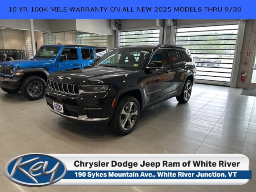 Key Chrysler Dodge Jeep Ram of White River is proud to present you with another True Market Priced Vehicle. This 2025 Jeep Grand Cherokee L Limited is loaded with the following Factory Options: Luxury Tech Group II (2nd Row Manual Window Shades, Auto-Dimming Exterior Driver Mirror, Capri Leatherette w/Axis II Seats, Integrated Off-Road Camera, Intersection Collision Assist System, Memory Steering Column, ParkSense Front/Rear Park Assist w/Stop, Passive Entry - Front/Rear Doors, Liftgate, Power Tilt/Telescope Steering Column, Rain Sensitive Windshield Wipers, Rear Back Up Camera Washer, Rearview Autodim Digital Display Mirror, Surround View Camera System, Ventilated Front Seats, and Wireless Charging Pad), Quick Order Package 22E, 3.45 Rear Axle Ratio, 3rd row seats: split-bench, 4-Wheel Disc Brakes, 6 Speakers, ABS brakes, Active Noise Control System, Air Conditioning, Alloy wheels, AM/FM radio: SiriusXM with 360L, Anti-whiplash front head restraints, Audio memory, Auto High-beam Headlights, Automatic temperature control, Brake assist, Bumpers: body-color, Capri Leatherette Seats, Compass, Delay-off headlights, Driver door bin, Driver vanity mirror, Dual front impact airbags, Dual front side impact airbags, Dual-Pane Panoramic Sunroof, Electronic Stability Control, Emergency communication system, Four wheel independent suspension, Front anti-roll bar, Front Bucket Seats, Front Center Armrest w/Storage, Front dual zone A/C, Front fog lights, Front License Plate Bracket, Front reading lights, Fully automatic headlights, Garage door transmitter, Heated door mirrors, Heated front seats, Heated rear seats, Heated steering wheel, Illuminated entry, Interior Rear Facing Camera, Knee airbag, Low tire pressure warning, Manual Fold Seatbacks, Memory seat, Model Year Tracking, Navigation System, Normal Duty Suspension, Occupant sensing airbag, Outside temperature display, Overhead airbag, Overhead console, Panic alarm, ParkView Rear Back-Up Camera, Passenger door bin, Passenger vanity mirror, Power door mirrors, Power driver seat, Power Liftgate, Power passenger seat, Power steering, Power windows, Radio data system, Radio: Uconnect 5 Nav w/10.1" Display, Rear air conditioning, Rear anti-roll bar, Rear reading lights, Rear window defroster, Rear window wiper, Reclining 3rd row seat, Remote keyless entry, Security system, Speed control, Speed-Sensitive Wipers, Split folding rear seat, Spoiler, Steering wheel mounted audio controls, Tachometer, Telescoping steering wheel, Tilt steering wheel, Traction control, Trip computer, Turn signal indicator mirrors, Variably intermittent wipers, Voltmeter, Wheels: 18" x 8.0" Polished/Painted Aluminum, and Wheels: 20" x 8.5" Machined/Painted Aluminum!!