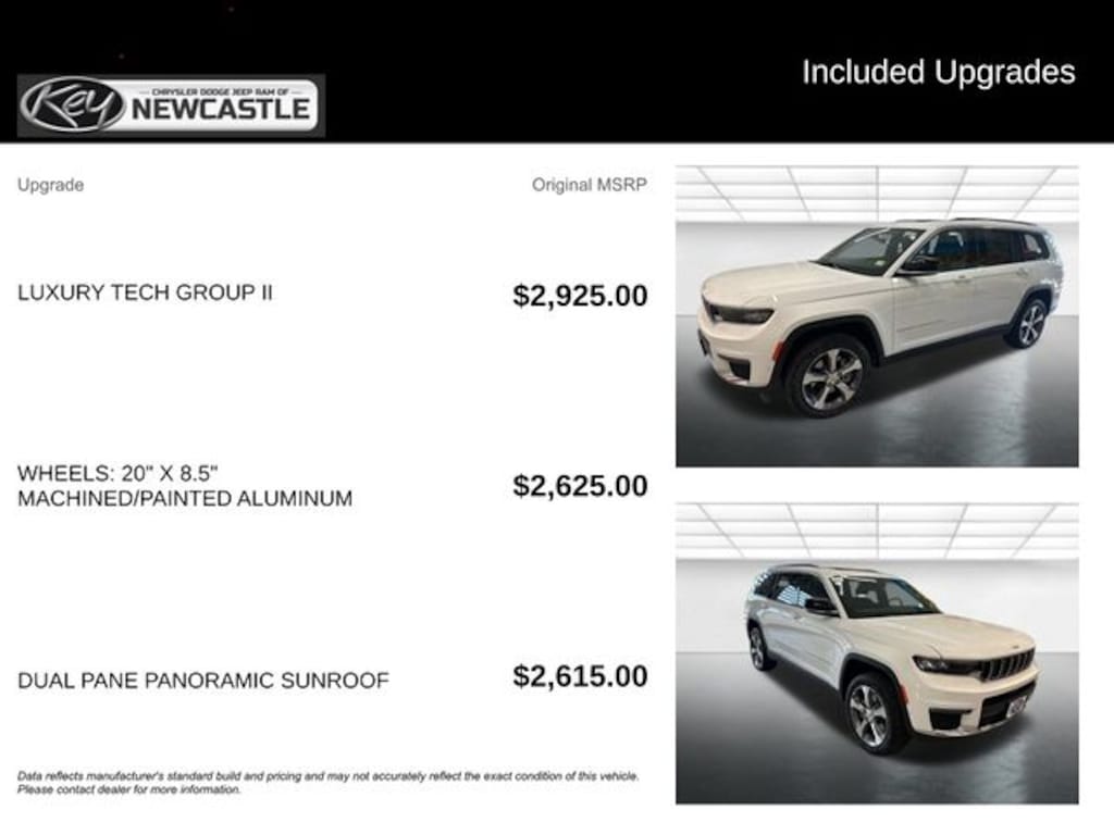 Key Chrysler Dodge Jeep Ram of White River is proud to present you with another True Market Priced Vehicle. This 2025 Jeep Grand Cherokee L Limited is loaded with the following Factory Options: Luxury Tech Group II (2nd Row Manual Window Shades, Auto-Dimming Exterior Driver Mirror, Capri Leatherette w/Axis II Seats, Integrated Off-Road Camera, Intersection Collision Assist System, Memory Steering Column, ParkSense Front/Rear Park Assist w/Stop, Passive Entry - Front/Rear Doors, Liftgate, Power Tilt/Telescope Steering Column, Rain Sensitive Windshield Wipers, Rear Back Up Camera Washer, Rearview Autodim Digital Display Mirror, Surround View Camera System, Ventilated Front Seats, and Wireless Charging Pad), Quick Order Package 23E (DISC), 3.45 Rear Axle Ratio, 3rd row seats: split-bench, 4-Wheel Disc Brakes, 6 Speakers, ABS brakes, Active Noise Control System, Air Conditioning, Alloy wheels, AM/FM radio: SiriusXM with 360L, Anti-whiplash front head restraints, Audio memory, Auto High-beam Headlights, Automatic temperature control, Brake assist, Bumpers: body-color, Capri Leatherette Seats, Compass, Delay-off headlights, Driver door bin, Driver vanity mirror, Dual front impact airbags, Dual front side impact airbags, Dual-Pane Panoramic Sunroof, Electronic Stability Control, Emergency communication system, Four wheel independent suspension, Front anti-roll bar, Front Bucket Seats, Front Center Armrest w/Storage, Front dual zone A/C, Front fog lights, Front License Plate Bracket, Front reading lights, Fully automatic headlights, Garage door transmitter, Heated door mirrors, Heated front seats, Heated rear seats, Heated steering wheel, Illuminated entry, Interior Rear Facing Camera, Knee airbag, Low tire pressure warning, Manual Fold Seatbacks, Memory seat, Model Year Tracking, Navigation System, Normal Duty Suspension, Occupant sensing airbag, Outside temperature display, Overhead airbag, Overhead console, Panic alarm, ParkView Rear Back-Up Camera, Passenger door bin, Passenger vanity mirror, Power door mirrors, Power driver seat, Power Liftgate, Power passenger seat, Power steering, Power windows, Radio data system, Radio: Uconnect 5 Nav w/10.1" Display, Rear air conditioning, Rear anti-roll bar, Rear reading lights, Rear window defroster, Rear window wiper, Reclining 3rd row seat, Remote keyless entry, Security system, Speed control, Speed-Sensitive Wipers, Split folding rear seat, Spoiler, Steering wheel mounted audio controls, Tachometer, Telescoping steering wheel, Tilt steering wheel, Traction control, Trip computer, Turn signal indicator mirrors, Variably intermittent wipers, Voltmeter, Wheels: 18" x 8.0" Polished/Painted Aluminum, and Wheels: 20" x 8.5" Machined/Painted Aluminum!!