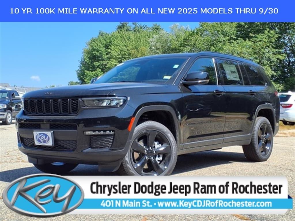 Key Chrysler Dodge Jeep Ram of Rochester is proud to present you with another True Market Priced Vehicle. This 2025 Jeep Grand Cherokee L Limited is loaded with the following Factory Options: Black Appearance Package (Gloss Black Exterior Accents and Wheels: 20" x 8.5" Gloss Black Painted Aluminum), Quick Order Package 22E, 3.45 Rear Axle Ratio, 3rd row seats: split-bench, 4-Wheel Disc Brakes, 6 Speakers, ABS brakes, Active Noise Control System, Air Conditioning, Alloy wheels, AM/FM radio: SiriusXM with 360L, Anti-whiplash front head restraints, Audio memory, Auto High-beam Headlights, Automatic temperature control, Brake assist, Bumpers: body-color, Capri Leatherette Seats, Compass, Delay-off headlights, Driver door bin, Driver vanity mirror, Dual front impact airbags, Dual front side impact airbags, Dual-Pane Panoramic Sunroof, Electronic Stability Control, Emergency communication system, Four wheel independent suspension, Front anti-roll bar, Front Bucket Seats, Front Center Armrest w/Storage, Front dual zone A/C, Front fog lights, Front License Plate Bracket, Front reading lights, Fully automatic headlights, Garage door transmitter, Heated door mirrors, Heated front seats, Heated rear seats, Heated steering wheel, Illuminated entry, Interior Rear Facing Camera, Knee airbag, Low tire pressure warning, Manual Fold Seatbacks, Memory seat, Model Year Tracking, Navigation System, Normal Duty Suspension, Occupant sensing airbag, Outside temperature display, Overhead airbag, Overhead console, Panic alarm, ParkView Rear Back-Up Camera, Passenger door bin, Passenger vanity mirror, Power door mirrors, Power driver seat, Power Liftgate, Power passenger seat, Power steering, Power windows, Radio data system, Radio: Uconnect 5 Nav w/10.1" Display, Rear air conditioning, Rear anti-roll bar, Rear reading lights, Rear window defroster, Rear window wiper, Reclining 3rd row seat, Remote keyless entry, Security system, Speed control, Speed-Sensitive Wipers, Split folding rear seat, Spoiler, Steering wheel mounted audio controls, Tachometer, Telescoping steering wheel, Tilt steering wheel, Traction control, Trip computer, Turn signal indicator mirrors, Variably intermittent wipers, Voltmeter, and Wheels: 18" x 8.0" Polished/Painted Aluminum!! Call us to ask about conditional rebates. Price includes: $2000 - 2025 National Retail Bonus Cash . Exp. 11/03/2025 $500 - 2025 National Jeep Monopoly Money Bonus Cash . Exp. 11/03/2025