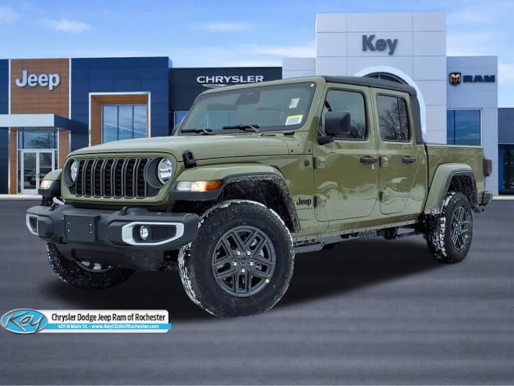 Key Chrysler Dodge Jeep Ram of Rochester is proud to present you with another True Market Priced Vehicle. This 2026 Jeep Gladiator Sport S is loaded with the following Factory Options: Convenience Group (Air Conditioning with Auto Temp Control, Cluster 7.0" TFT Color Display, Corning Gorilla Glass, Daytime Running Lamp System, Emergency/Assistance Call, Front Door Locks 2-Door Passive Entry, Heated Front Seats, Heated Steering Wheel, Remote Start System, and Universal Garage Door Opener), Max Tow Package with 4.10 Axle Ratio (Anti-Spin Differential Rear Axle, Black Molded-in-Color Fender Flares (2-Piece), Class IV Receiver Hitch, Conventional Differential Front Axle, Dana M210 Wide Front Axle, Dana M220 Wide Rear Axle, and Heavy-Duty Engine Cooling), Quick Order Package 24S Sport S (Advanced Brake Assist, Automatic Headlamps, Deep Tint Sunscreen Windows, Full Speed Forward Collision Warning Plus, Normal Duty Plus Suspension, Power Heated Mirrors, Premium Wrapped Steering Wheel, Security Alarm, Sun Visors with Illuminated Vanity Mirrors, and Wheels: 17" x 7.5" Gray), 110 Mph Vehicle Max Speed Calibration, 12.3" Touchscreen Display, 4-Wheel Disc Brakes, 4G LTE Wi-Fi Hot Spot, 8 Speakers, ABS brakes, Air Conditioning, Alexa Built-in, AM/FM radio: SiriusXM with 360L, Apple CarPlay, Apple CarPlay/Android Auto, Brake assist, Compass, Connectivity - US/Canada, Delay-off headlights, Driver door bin, Driver vanity mirror, Dual front impact airbags, Dual front side impact airbags, Electronic Stability Control, Front anti-roll bar, Front Bucket Seats, Front Center Armrest w/Storage, Front fog lights, Front License Plate Bracket, Front reading lights, Google Android Auto, Illuminated entry, Integrated roll-over protection, Low tire pressure warning, Manufacturer's Statement of Origin, Normal Duty Suspension, Occupant sensing airbag, Outside temperature display, Overhead airbag, Panic alarm, ParkView Rear Back-Up Camera, Passenger door bin, Passenger vanity mirror, Power steering, Power windows, Radio data system, Radio: Uconnect 5 with 12.3" Display, Rear anti-roll bar, Rear reading lights, Remote keyless entry, Speed control, Split folding rear seat, Steering wheel mounted audio controls, Tachometer, Telescoping steering wheel, Tilt steering wheel, Traction control, Trip computer, USB Host Flip, Variably intermittent wipers, Voltmeter, and Wheels: 17" x 7.5" Black Steel Styled!!