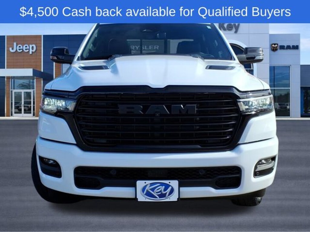 Key Chrysler Dodge Ram of Portsmouth is proud to present you with another True Market Priced Vehicle. This 2026 Ram 1500 Laramie is loaded with the following Factory Options: Advanced Safety Group II (12-Way/1-Way Trailer Connector, Active Driving Assist System, Drowsy Driver Detection, Evasive Steer Assist, Exterior Mirrors Approach Lamps, Intersection Collision Assist System, Surround View Camera System, and Traffic Sign Recognition), Bed Utility Group (Exterior 115V AC Outlet and MOPAR 4 Adjustable Cargo Tie-Down Hooks), Laramie Level 2 Equipment Group (14.4" Touchscreen Display, 4G LTE Wi-Fi Hot Spot, Cluster 12" TFT Color Display, Connectivity - US/Canada, Front Passenger Interactive Display, GPS Navigation, Integrated Center Stack Radio, Power Tailgate, Rain Sensitive Windshield Wipers, SiriusXM Radio Service, and USB Host Flip), Night Edition (Accent Color Door Handles, Accent Color Premium Power Mirrors, Accent Color Tailgate Handle, Anti-Spin Differential Rear Axle, Auto Power-Folding Mirrors, Auto-Dimming Exterior Driver Mirror, Black Exterior Truck Badging, Black Headlamp Bezels, Black Interior Accents, Black Painted Exterior Mirrors Caps, Black Tail Lamp Bezels, Body Color Front Bumper, Convex Wide-Angle Exterior Mirror Insert, Exterior Mirrors Courtesy Lamps, Grille Surround 3 Black Texture 2 Black, Pirelli Brand Tires, Proximity Approach/Departure Lamps, RAM Grille Badge - Black, Sport Performance Hood, and Wheels: 22" x 9" Forged Aluminum), Quick Order Package 21H Laramie, Technology Group (Heads-Up Display and LED CHMSL Lamp), 10 Speakers, 3.55 Rear Axle Ratio, 4-Wheel Disc Brakes, ABS brakes, Active Noise Control System, Air Conditioning, Alloy wheels, AM/FM radio: SiriusXM with 360L, Apple CarPlay/Android Auto, Audio memory, Auto High-beam Headlights, Auto-dimming door mirrors, Auto-dimming Rear-View mirror, Automatic temperature control, Brake assist, Bumpers: chrome, Chrome Exterior Mirrors, Compass, Delay-off headlights, Dome Dual LED Reading Lamp, Driver door bin, Driver vanity mirror, Dual front impact airbags, Dual front side impact airbags, Dual-Pane Panoramic Sunroof, Electronic Stability Control, Front anti-roll bar, Front Bucket Seats, Front Center Armrest w/Storage, Front dual zone A/C, Front fog lights, Front License Plate Bracket, Front reading lights, Front wheel independent suspension, Fully automatic headlights, Garage door transmitter, Heated door mirrors, Heated front seats, Heated rear seats, Heated steering wheel, Illuminated entry, Leather steering wheel, Leather Trimmed Bucket Seats, LED Dome/Reading Lamp, Low tire pressure warning, Manufacturer's Statement of Origin, Memory seat, Mopar Black Tubular Side Steps, Navigation System, Occupant sensing airbag, Off-Road Information Pages, Outside temperature display, Overhead airbag, Overhead console, Panic alarm, ParkView Rear Back-Up Camera, Passenger door bin, Passenger vanity mirror, Power door mirrors, Power dri