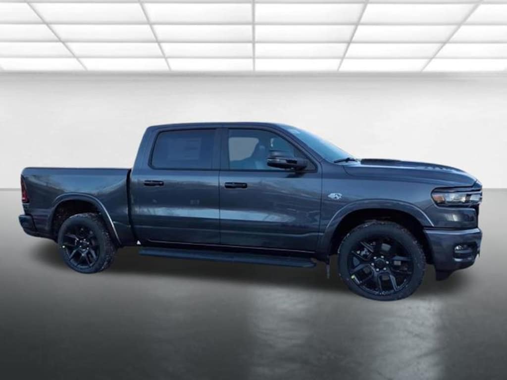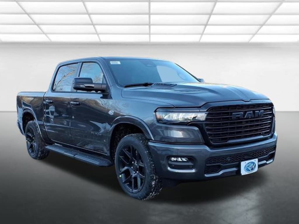Key Chrysler Dodge Jeep Ram Newcastle is proud to present you with another True Market Priced Vehicle. This 2026 Ram 1500 Laramie is loaded with the following Factory Options: Bed Utility Group (Exterior 115V AC Outlet, MOPAR 4 Adjustable Cargo Tie-Down Hooks, and MOPAR Spray in Bedliner), Laramie Level 2 Equipment Group (14.4" Touchscreen Display, 4G LTE Wi-Fi Hot Spot, Cluster 12" TFT Color Display, Connected Travel and Traffic Services, Connectivity - US/Canada, Front Passenger Interactive Display, GPS Navigation, Harman/Kardon 19 Speaker Premium Sound, Integrated Center Stack Radio, Integrated Voice Command with Bluetooth, Power Tailgate, Radio: Uconnect 5 Nav with 14.4" Display, Rain Sensitive Windshield Wipers, SiriusXM Radio Service, SiriusXM with 360L, and USB Host Flip), Night Edition (Accent Color Door Handles, Accent Color Premium Power Mirrors, Accent Color Tailgate Handle, Anti-Spin Differential Rear Axle, Auto Power-Folding Mirrors, Auto-Dimming Exterior Driver Mirror, Black Exterior Truck Badging, Black Headlamp Bezels, Black Interior Accents, Black Painted Exterior Mirrors Caps, Black Tail Lamp Bezels, Body Color Front Bumper, Body Color Rear Bumper with Step Pads, Convex Wide-Angle Exterior Mirror Insert, Dual Exhaust with Black Tips, Exterior Mirrors Approach Lamps, Exterior Mirrors Courtesy Lamps, Exterior Mirrors with Heating Element, Exterior Mirrors with Memory, Exterior Mirrors with Supplemental Signals, Grille Surround 3 Black Texture 2 Black, Pirelli Brand Tires, Proximity Approach/Departure Lamps, RAM Grille Badge - Black, Sport Performance Hood, and Wheels: 22" x 9" Forged Aluminum), Quick Order Package 27H Laramie, 10 Speakers, 33 Gallon Fuel Tank, 4-Wheel Disc Brakes, ABS brakes, Active Noise Control System, Air Conditioning, Alloy wheels, AM/FM radio: SiriusXM with 360L, Apple CarPlay/Android Auto, Audio memory, Auto High-beam Headlights, Auto-dimming door mirrors, Auto-dimming Rear-View mirror, Automatic temperature control, Brake assist, Bumpers: chrome, Chrome Exterior Mirrors, Compass, Delay-off headlights, Dome Dual LED Reading Lamp, Driver door bin, Driver vanity mirror, Dual front impact airbags, Dual front side impact airbags, Dual-Pane Panoramic Sunroof, Electronic Stability Control, Front anti-roll bar, Front Bucket Seats, Front Center Armrest w/Storage, Front dual zone A/C, Front fog lights, Front License Plate Bracket, Front reading lights, Front wheel independent suspension, Fully automatic headlights, Garage door transmitter, Heated door mirrors, Heated Front seats, Heated rear seats, Heated steering wheel, Illuminated entry, Leather steering wheel, Leather Trimmed Bucket Seats, LED Dome/Reading Lamp, Low tire pressure warning, Manufacturer's Statement of Origin, Memory seat, Mopar Black Tubular Side Steps, MOPAR Front and Rear Rubber Floor Mats, Navigation System, Occupant sensing airbag, Off-Road Information Pages, Outside temperature display, Overhead airbag, Overhead console, Panic alarm, ParkView Rear Back-Up Camera, Passenger door bin, Passenger vanity mirror, Power door mirrors, Power driver seat, Power passenger seat, Power steering, Power windows, Radio data system, Radio: Uconnect 5 Navigation with 12.0" Display, RAM Grille Badge - Chrome, Rear anti-roll bar, Rear reading lights, Rear seat center armrest, Rear step bumper, Remote keyless entry, Security system, Speed control, Split folding rear seat, Steeri