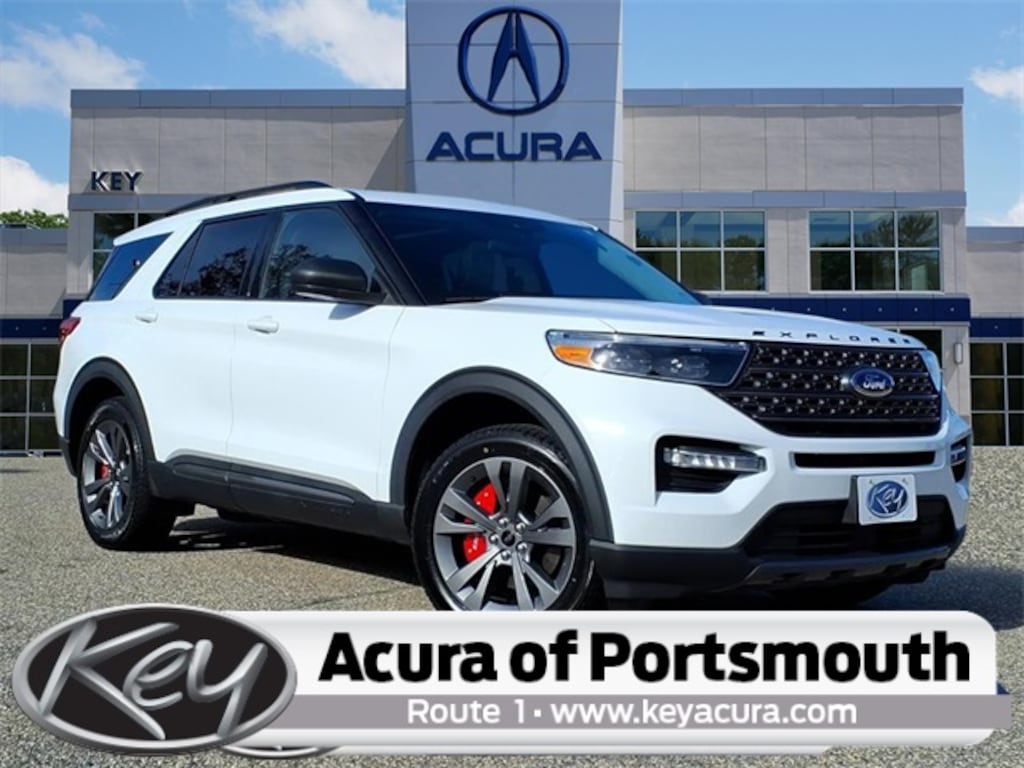Key Acura of Portsmouth is proud to present you with another True Market Priced Pre-Owned Vehicle. Transparent Pricing Of $ 28027 !! This 2021 Ford Explorer XLT is loaded with the following Factory Options: 4WD Equipment Group 202A (Acoustic-Laminated Front Side Windows, ActiveX Captain's Chairs, Heated Steering Wheel, LED Fog Lamps, and Remote Start System), Ford Co-Pilot360 Assist+ (Evasive Steering Assist, Intelligent Adaptive Cruise Control, Speed Sign Recognition, and Voice-Activated Touchscreen Navigation System), XLT Sport Appearance Package (Wheels: 20" 10-Spoke Carbonized Gray-Painted), 4WD, 1st Row Heated Seats, 3.58 Non-Limited-Slip Rear Axle Ratio, 3rd row seats: bench, 4-Wheel Disc Brakes, 6 Speakers, ABS brakes, Air Conditioning, Alloy wheels, AM/FM radio: SiriusXM, AM/FM Stereo, Auto High-beam Headlights, Automatic temperature control, Brake assist, Bumpers: body-color, Compass, Delay-off headlights, Driver door bin, Driver vanity mirror, Dual front impact airbags, Dual front side impact airbags, Electronic Stability Control, Emergency communication system: SYNC 3 911 Assist, Exterior Parking Camera Rear, FordPass Connect, Four wheel independent suspension, Front anti-roll bar, Front Bucket Seats, Front Center Armrest, Front dual zone A/C, Front reading lights, Fully automatic headlights, Heated door mirrors, Heated front seats, Illuminated entry, Knee airbag, Leather steering wheel, Low tire pressure warning, Occupant sensing airbag, Outside temperature display, Overhead airbag, Overhead console, Panic alarm, Passenger door bin, Passenger vanity mirror, Power door mirrors, Power driver seat, Power Liftgate, Power passenger seat, Power steering, Power windows, Rear air conditioning, Rear anti-roll bar, Rear reading lights, Rear window defroster, Rear window wiper, Remote keyless entry, Roof rack: rails only, Security system, Speed control, Speed-sensing steering, Speed-Sensitive Wipers, Split folding rear seat, Spoiler, Steering wheel mounted audio controls, SYNC 3 Communications & Entertainment System, SYNC 3/Apple CarPlay/Android Auto, Tachometer, Telescoping steering wheel, Tilt steering wheel, Traction control, Trip computer, Twin Panel Moonroof, Unique Cloth Captain's Chairs, Variably intermittent wipers, and Wheels: 18" 5-Spoke Sparkle Silver-Painted Alum!!
