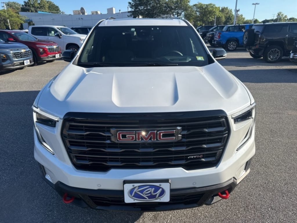 AWD, Forest Storm W/Mahogany Accents Cloth. CARFAX One-Owner. Clean CARFAX. White Frost Tricoat 2025 GMC Acadia AT4 AWD 8-Speed Automatic 2.5L DOHC