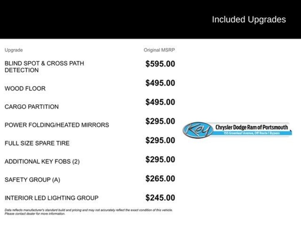 Key Chrysler Dodge Ram of Portsmouth is proud to present you with another True Market Priced Pre-Owned Vehicle. Transparent Pricing Of $ !! This 2023 Ram ProMaster 3500 High Roof is loaded with the following Factory Options: Interior LED Lighting Group (Ambient LED Interior Lighting and Rear Cargo LED Lamp), Quick Order Package 22A, Safety Group (A) (Blind Spot & Cross Path Detection, Daytime Running Headlamps, Front Fog Lamps, and Power Folding/Heated Mirrors), 4 Speakers, 4-Wheel Disc Brakes, 4.08 Axle Ratio, ABS brakes, Additional Key Fobs (2), Air Conditioning, AM/FM radio: SiriusXM, Apple CarPlay/Android Auto, Black/Gray Seats, Bodyside moldings, Brake assist, Cargo Partition, Center Wheel Cap, Cloth Bucket Seats, Driver door bin, Driver Seat Armrest, Driver's Seat Mounted Armrest, Electronic Stability Control, Front anti-roll bar, Front Bucket Seats, Front License Plate Bracket, Front reading lights, Front wheel independent suspension, Heavy Duty Suspension, Illuminated entry, Low tire pressure warning, Manual Folding Exterior Mirrors, Manufacturer's Statement of Origin, Outside temperature display, Overhead airbag, Overhead console, ParkView Rear Back-Up Camera, Passenger Bucket Seat, Passenger door bin, Power steering, Power windows, Radio: Uconnect 5 w/7" Display, Rear anti-roll bar, Remote keyless entry, Steering wheel mounted audio controls, Tachometer, Telescoping steering wheel, Traction control, Trip computer, Turn signal indicator mirrors, Variably intermittent wipers, Wheels: 16" x 6.0" Steel, and Wood Floor!!