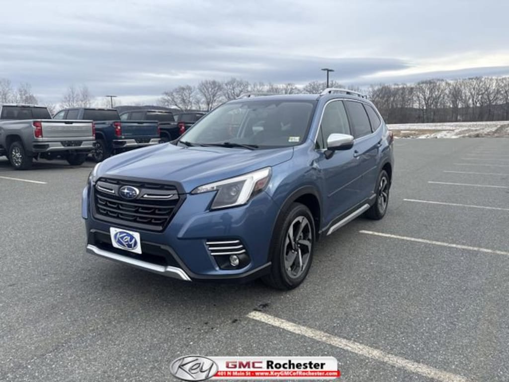 Thank you for shopping with Key GMC of Rochester, part of the Key Auto Group Family of Dealerships and home to our Exclusive Key Care Vehicle Protection Program offered on every New and Pre-Owned Vehicle. Ask a Key Team Member today how Key Care can protect your investment for years to come.We believe there is more to buying a vehicle than worrying about the price. For that reason, Key Auto has simplified that process for our customers. When we price a vehicle, we take the following into consideration: 1) market conditions, 2) what the area dealers are selling them for, 3) NADA retail value. This way, when you leave a Key Auto Dealership, you're confident you've received the absolute best deal.Clean CARFAX.2022 Subaru Forester Touring 4D Sport Utility Horizon Blue Pearl Touring 2.5L 4-Cylinder DOHC 16V Lineartronic CVT AWDKey GMC Of Rochester is proud to present you with another True Market Priced Pre-Owned Vehicle. This 2022 Subaru Forester Touring is loaded with the following Factory Options: Standard Model, 3.70 Axle Ratio, 4-Wheel Disc Brakes, 9 Speakers, ABS brakes, Air Conditioning, Alloy wheels, AM/FM radio: SiriusXM, Anti-whiplash front head restraints, Auto High-beam Headlights, Automatic temperature control, Brake assist, Bumpers: body-color, CD player, Driver door bin, Driver vanity mirror, Dual front impact airbags, Dual front side impact airbags, Electronic Stability Control, Emergency communication system: STARLINK Safety and Security (Subscription Required), Exterior Parking Camera Rear, Four wheel independent suspension, Front anti-roll bar, Front Bucket Seats, Front Center Armrest, Front dual zone A/C, Front fog lights, Front reading lights, Fully automatic headlights, harman/kardon 576W Amp & Speaker System, harman/kardon® Speakers, Heated door mirrors, Heated Front Bucket Seats, Heated front seats, Heated rear seats, Heated steering wheel, HVAC memory, Illuminated entry, Knee airbag, Leather Shift Knob, Low tire pressure warning, Memory seat, Navigation System, Occupant sensing airbag, Outside temperature display, Overhead airbag, Overhead console, Panic alarm, Passenger door bin, Passenger vanity mirror, Perforated Leather-Trimmed Upholstery, Power door mirrors, Power driver seat, Power Liftgate, Power moonroof: Panoramic, Power passenger seat, Power steering, Power windows, Premium audio system: harman/kardon, Radio data system, Radio: Subaru Starlink 8.0 Multimedia Nav System, Rear anti-roll bar, Rear seat center armrest, Rear window defroster, Rear window wiper, Remote keyless entry, Roof rack: rails only, Security system, Speed control, Speed-sensing steering, Split folding rear seat, Spoiler, STARLINK/Apple CarPlay/Android Auto, Steering wheel mounted audio controls, Tachometer, Telescoping steering wheel, Tilt steering wheel, Traction control, Trip computer, Turn signal indicator mirrors, Variably intermittent wipers, and Wheels: 18 x 7.0J Dark Gray Machine Finish Alloy!!