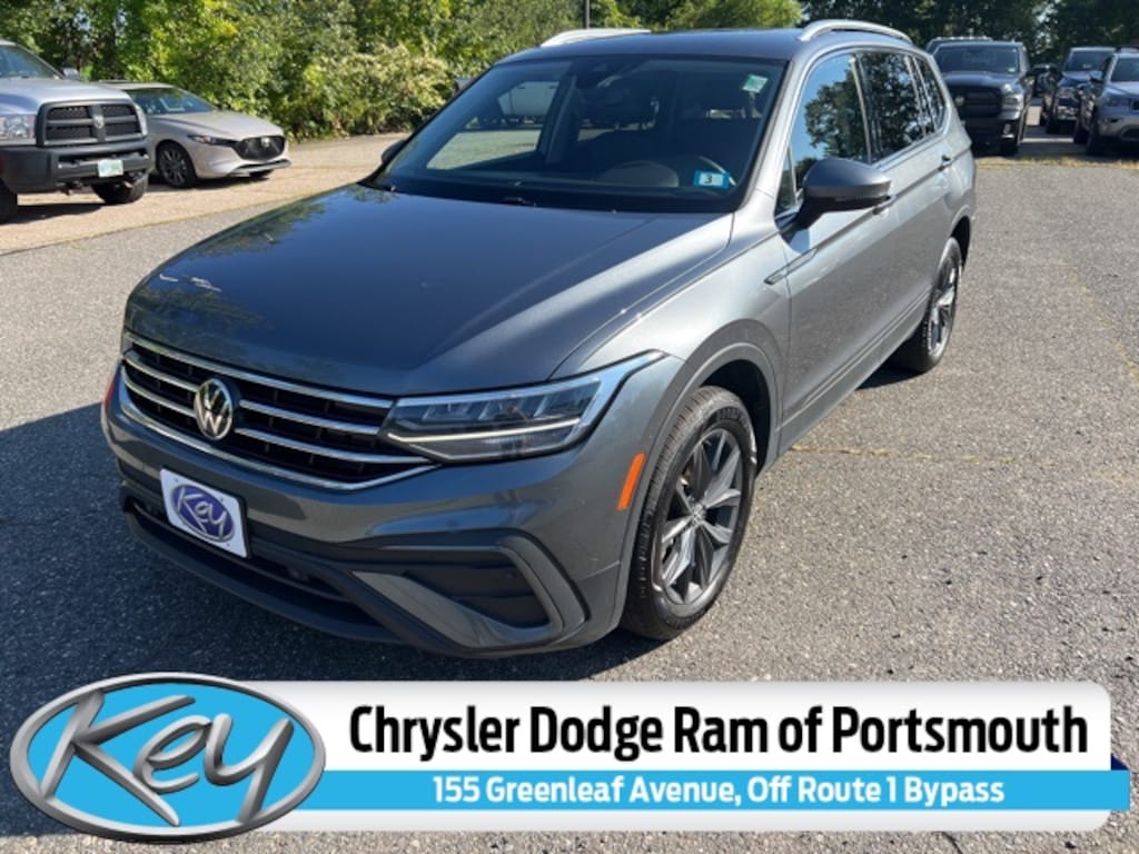Key Chrysler Dodge Ram of Portsmouth is proud to present you with another True Market Priced Pre-Owned Vehicle. Transparent Pricing Of $ 23200 !! This 2022 Volkswagen Tiguan 2.0T SE is loaded with the following Factory Options: Panoramic Sunroof Package, AWD, 4-Wheel Disc Brakes, 4-Wheel Independent Suspension, ABS brakes, Four wheel independent suspension, Heated door mirrors, Traction control, and Wheels: 18" Dark Graphite 10-Spoke Alloy Panoramic Sunroof Package, AWD, 4-Wheel Disc Brakes, 4-Wheel Independent Suspension, ABS brakes, Four wheel independent suspension, Heated door mirrors, Traction control, Wheels: 18" Dark Graphite 10-Spoke Alloy, 3.33 Axle Ratio, 6 Speakers, Air Conditioning, Alloy wheels, AM/FM radio: SiriusXM with 360L, Auto-dimming Rear-View mirror, Automatic temperature control, Brake assist, Bumpers: body-color, Compass, Delay-off headlights, Driver door bin, Driver vanity mirror, Dual front impact airbags, Dual front side impact airbags, Electronic Stability Control, Emergency communication system: Car-Net, Exterior Parking Camera Rear, Front anti-roll bar, Front Bucket Seats, Front Center Armrest, Front dual zone A/C, Front reading lights, Fully automatic headlights, Heated Front Comfort Seats, Heated front seats, Illuminated entry, Leather Shift Knob, Low tire pressure warning, Occupant sensing airbag, Outside temperature display, Overhead airbag, Overhead console, Panic alarm, Passenger door bin, Passenger vanity mirror, Perforated V-Tex Leatherette Seating Surfaces, Power door mirrors, Power driver seat, Power Liftgate, Power steering, Power windows, Radio data system, Radio: MIB3 Composition Media AM/FM/HD, Rain sensing wipers, Rear anti-roll bar, Rear reading lights, Rear seat center armrest, Rear window defroster, Rear window wiper, Remote keyless entry, Roof rack: rails only, Security system, Speed control, Speed-sensing steering, Split folding rear seat, Spoiler, Steering wheel mounted audio controls, Tachometer, Telescoping steering wheel, Tilt steering wheel, Trip computer, Turn signal indicator mirrors, and Variably intermittent wipers!!